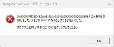 WidgetService.exe アプリケーションエラーが表示された場合は、以下の方法で無効化してください。