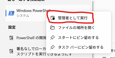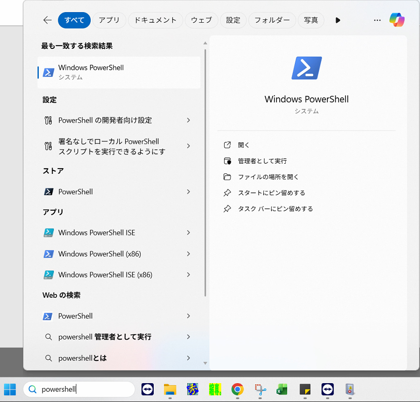 ・検索ボックスにPowerShellと入力